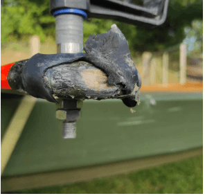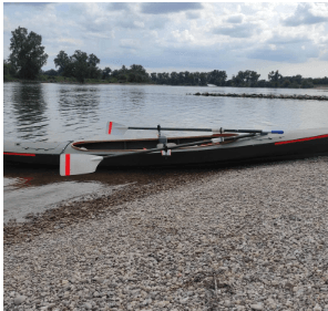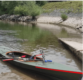 Niestety przepławki to też wyzwanie dla mojej łódki. Spuszczając łódkę na linach po pochylni, odsadnie mocno otarły mi się o nabrzeże i zdarła mi się karbonowa warstwa tak, że uwidoczniło się naturalne drewno. Z pewnością jak wrócę to będzie widać, że łódka trochę świata zwiedziła i nie stała w hangarze.