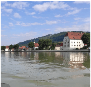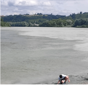 Inn od Dunaju różni się kolorem. Gdy rzeki się wymieszają Dunaj bierze kolor Innu i staje się modry