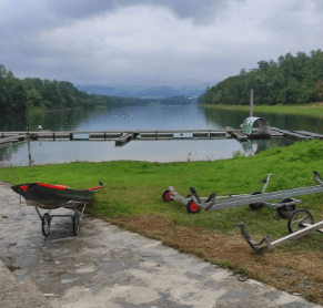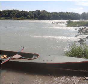 Pokonałam śluzę Jochanstein normalnie, czyli przez śluzę i znalazłam się w Austrii. W śluzie Aschach spotkała mnie niemiła niespodzianka, śluzowy wyrzucił mnie ze śluzy. Nie było żadnej dyskusji. Kazał mi płynąć w miejsce do przenosek. I nie pomogły żadne argumenty, że łódka jest ciężka, że płynę sama itp. Po prostu won i już. Nie miałam wyjścia i popłynęłam na przenoskę. Dało mi to ostro w kość. Upał, łódka była tak ciężka, że nie miałam siły wyciągnąć jej z wody na wózku. Musiałam wszystko wypakować i jakoś poszło. Nie zorientowałam się, ale w połowie drogi zobaczyłam coś w stylu takiej zamykanej altanki, w której są różnej wielkości wózki, które można wykorzystać do przenoski. Wózki są w kilku kształtach i rozmiarach i mają zdecydowanie większe koła niż mój wózek, który mam ze sobą. Jutro spróbuję więc któregoś z tych większych wózków. ale najpierw podejmę znów próbę negocjacji, żeby mnie wpuszczono do śluzy.