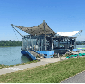 Śpię tuż przed Wiedniem, znów w klubie wioślarskim, gości mnie klub Alemannia Ruderverein. Tym razem nie w namiocie, ponieważ w środku nocy uruchamia się tu system podlewania trawników więc mieszkam w klubie. Mam kuchnię, prysznic, a nawet siłownię z ergometrami, jakby mi było mało wiosłowania:-) Płacę za nocleg całe 8 Euro. Ceny noclegów w klubach wioślarskich wahają się od 8 do 12 Euro.